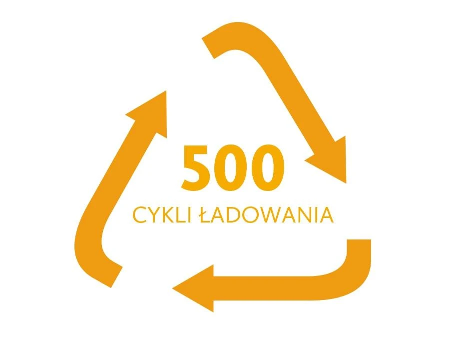 - Maks. ilość cykli ładowań - do 500 cykli