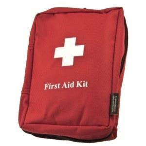 Praktyczna apteczka pierwszej pomocy. Niezbędna podczas turystycznych wypraw, biwaków, zawodów sportowych czy choćby w samochodzie. W skład zestawu wchodzą elementy do udzielania pierwszej pomocy, zestaw bandaży i opatrunków, a całość zapakowana jest saszetkę z wodoodpornego nylonu - gęste włókna. Kolor materiału pokrowca - czerwony. Z przodu apteczki widnieje biały krzyż.