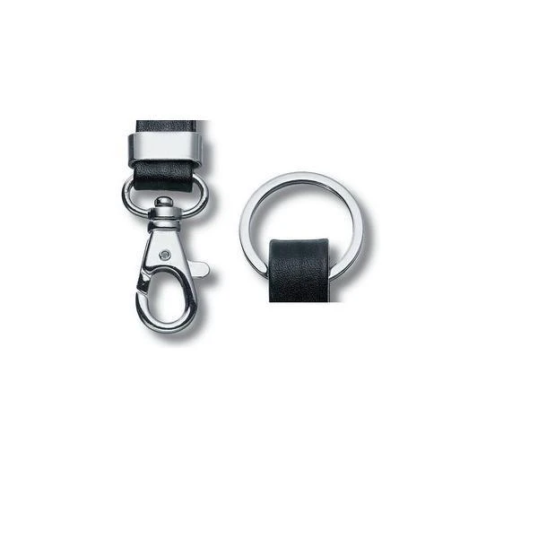 Zawieszka - brelok do scyzoryka na pasek z czarnej skóry długości 7 cm. Posiada kółko oraz karabińczyk.