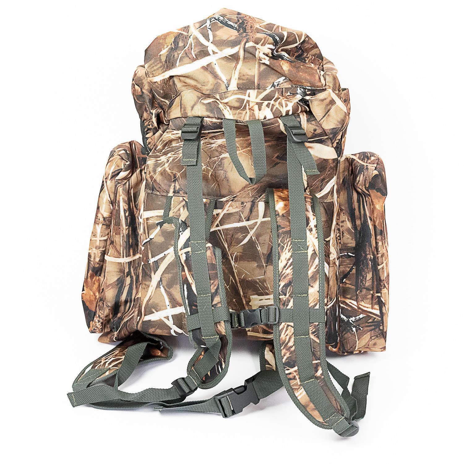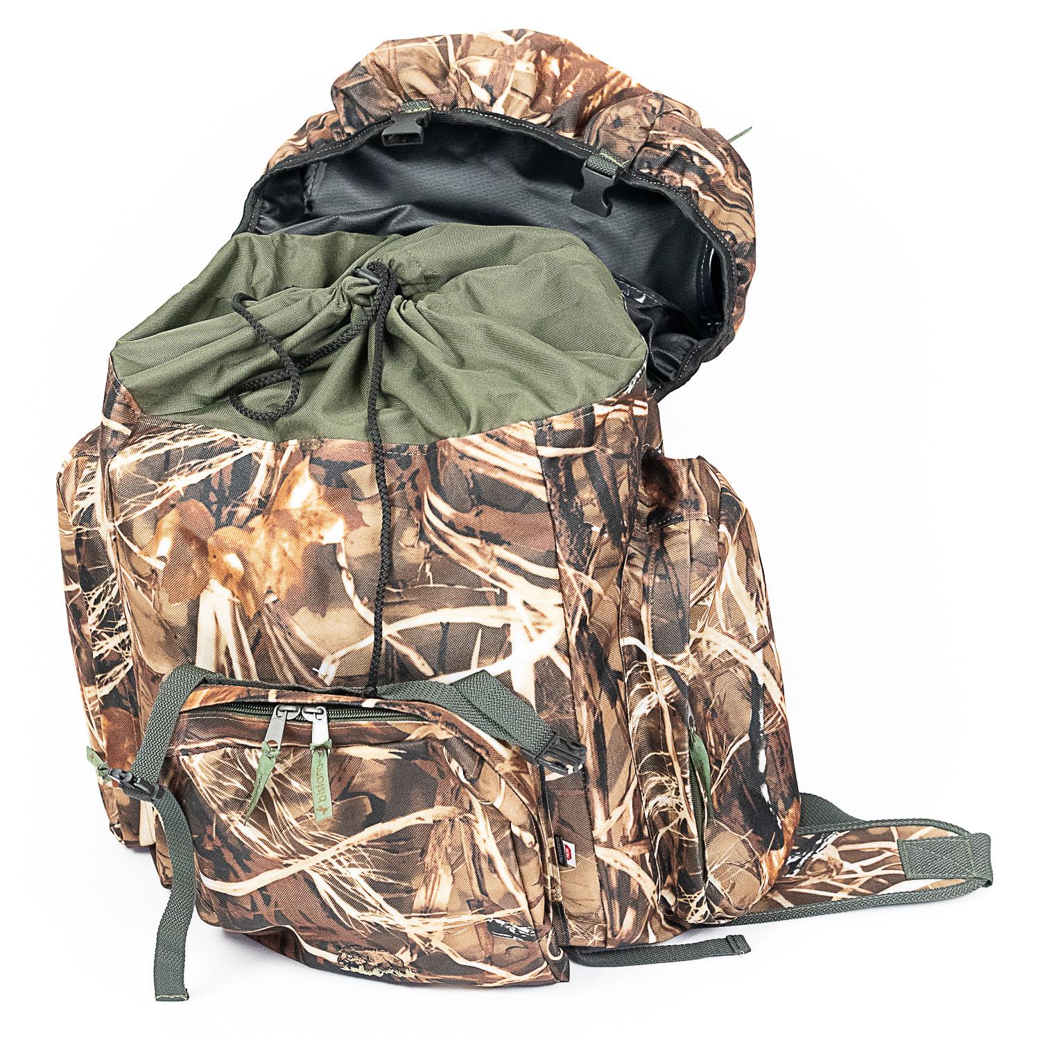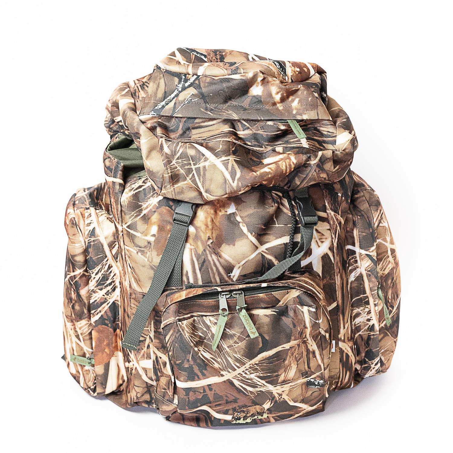 Duży plecak myśliwski Grzępa wzór leśny real tree, trzciny Bistana