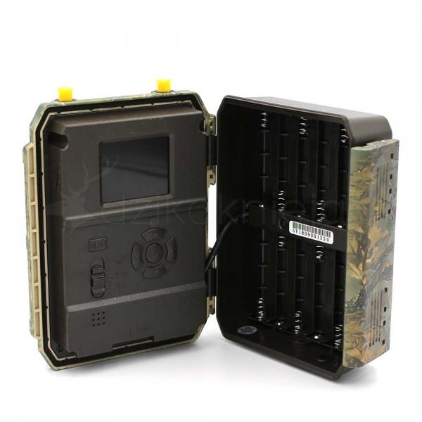 - Transmisja zdjęć przez MMS- po wykryciu ruchu Fotopułapka automatycznie wysyła zrobione zdjęcia na telefon lub e-mail (do 4 telefonów lub 4 adresów e-mail).