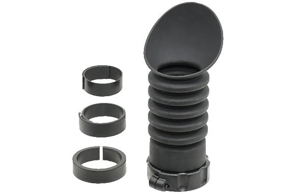 Dzięki specjalnej budowie w formie harmonijki amortyzuje uderzenia wokół oka podczas strzałów.