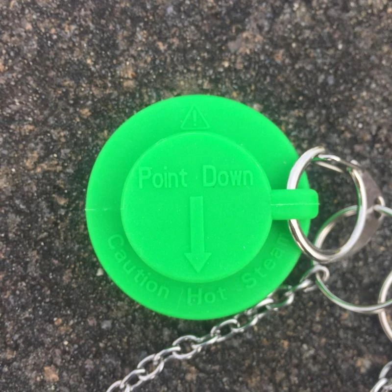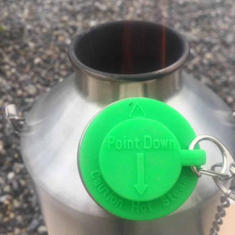- 4. Gdy woda się zagotuje zdejmij czajnik z ognia i postaw na równym podłożu. Pozwól wodzie osiąść przez około 1 minutę. Przytrzymaj uchwyt czajnika jedną ręką. Następnie drugą ręką umieść palec wskazujący w podzielonym pierścieniu, a kciuk po przeciwnej stronie gwizdka. Delikatnie podnieś gwizdek. Nigdy nie szarp za korek gdyż możesz się poparzyć.