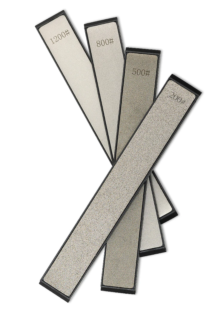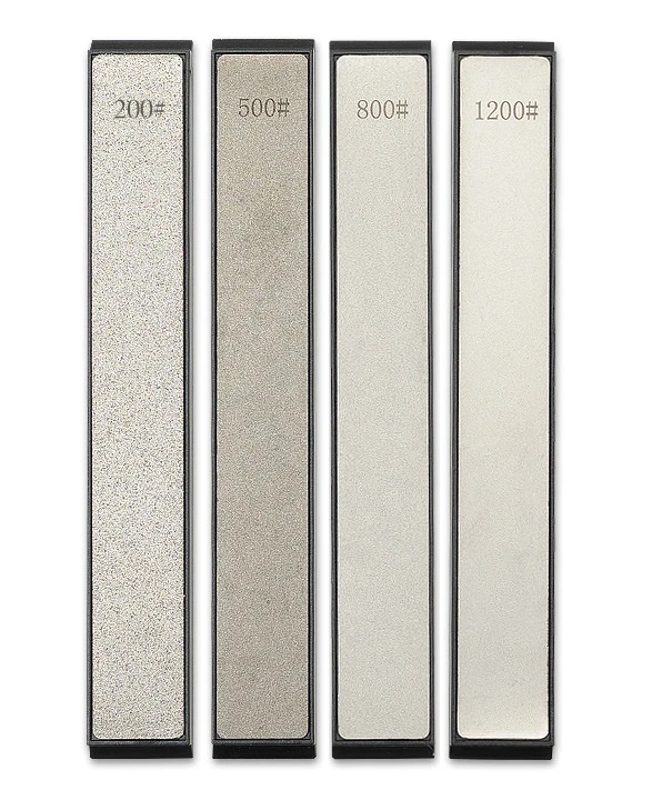 W komplecie znajdują się cztery kamienie diamentowe o różnych gradacjach, które pozwalają przeprowadzić cały proces ostrzenia - od wstępnego nadania krawędzi tnącej aż po jej wygładzenie i wykończenie.