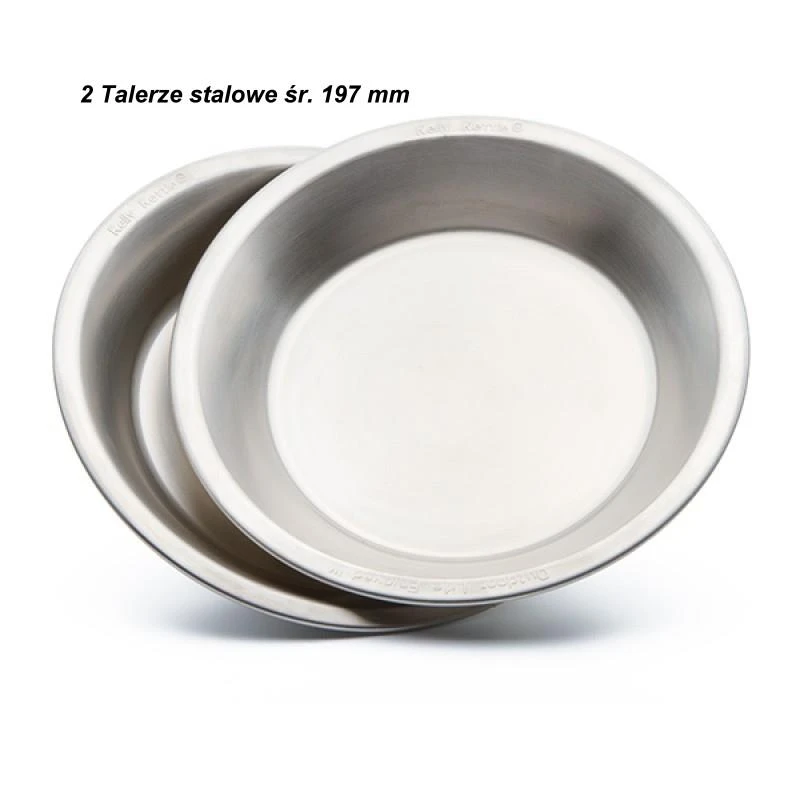 - 5.Zestaw dwóch talerzy stalowych - można ich użyć rózniweż jako patelnia, mają 197 mm średnicy oraz 30 mm głębokości.