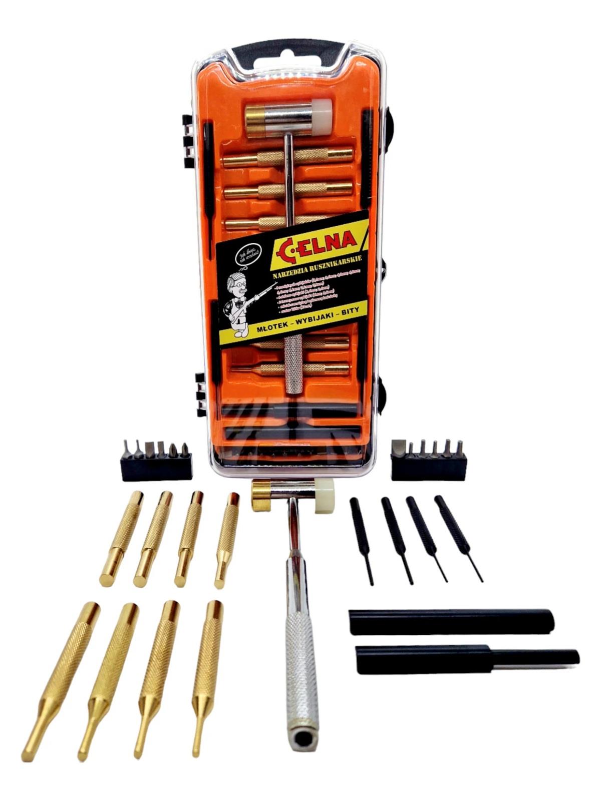 Profesjonalny zestaw rusznikarski CELNA - młotek, wybijaki i bity w komplecie