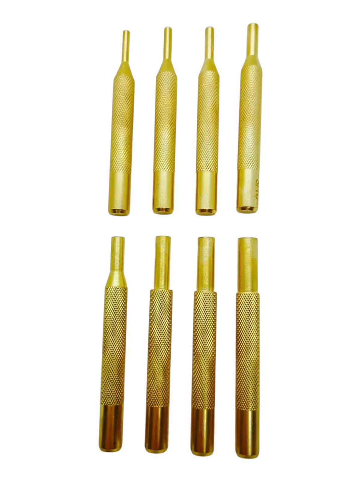 - 8 wybijaków mosiężnych: 3,2 mm, 3,6 mm, 4,0 mm, 4,8 mm, 5,6 mm, 6,1 mm, 7,1 mm, 7,9 mm