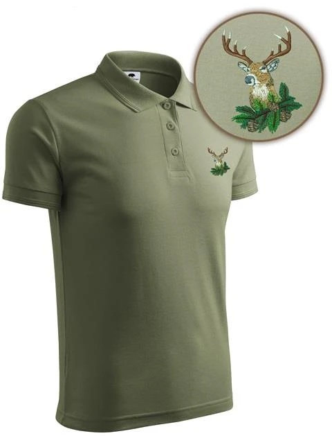 Koszulka myśliwska POLO oliwkowa z haftem Medalion