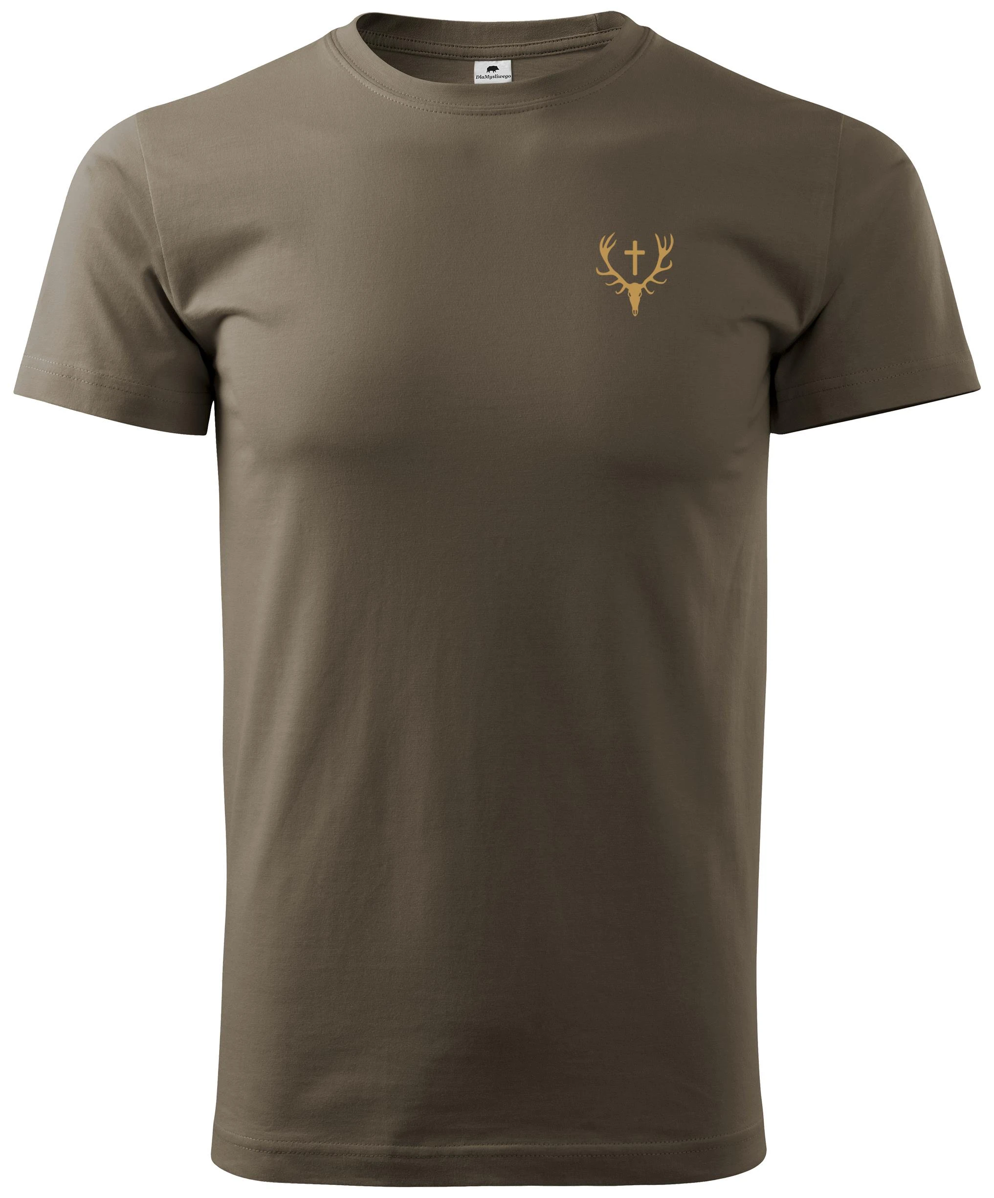 Grafika w kolorze złotawym przedstawia wieniec jelenia.