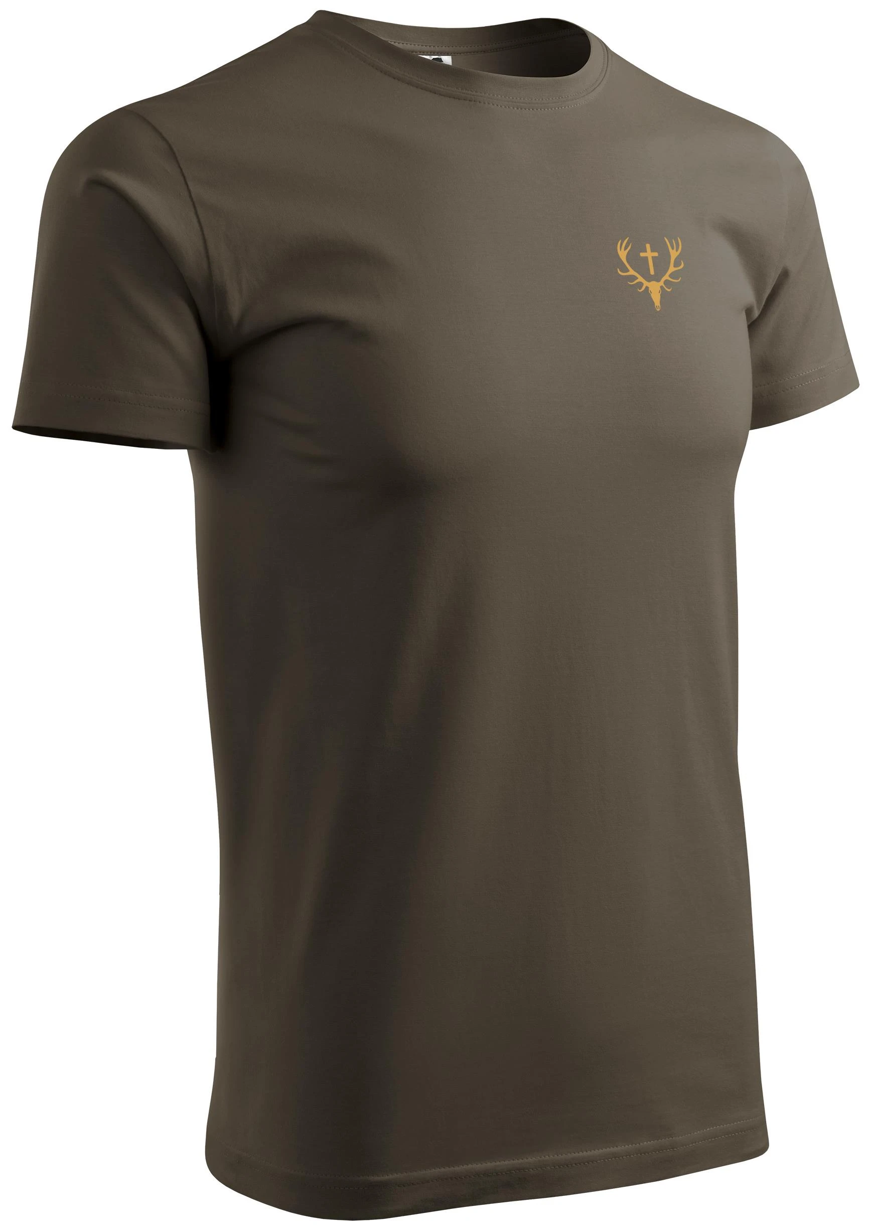 Wysokiej jakości podkoszulka myśliwska w kolorze brązowym.