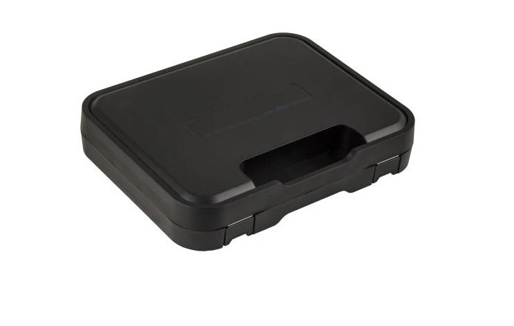 Kufer do transportu broni krótkiej, wykonany z wytrzymałego tworzywa, wyłożony grubą gąbką o strukturze tzw. szczęki rekina – tak aby broń podczas transportu nie miała możliwości przesuwu.