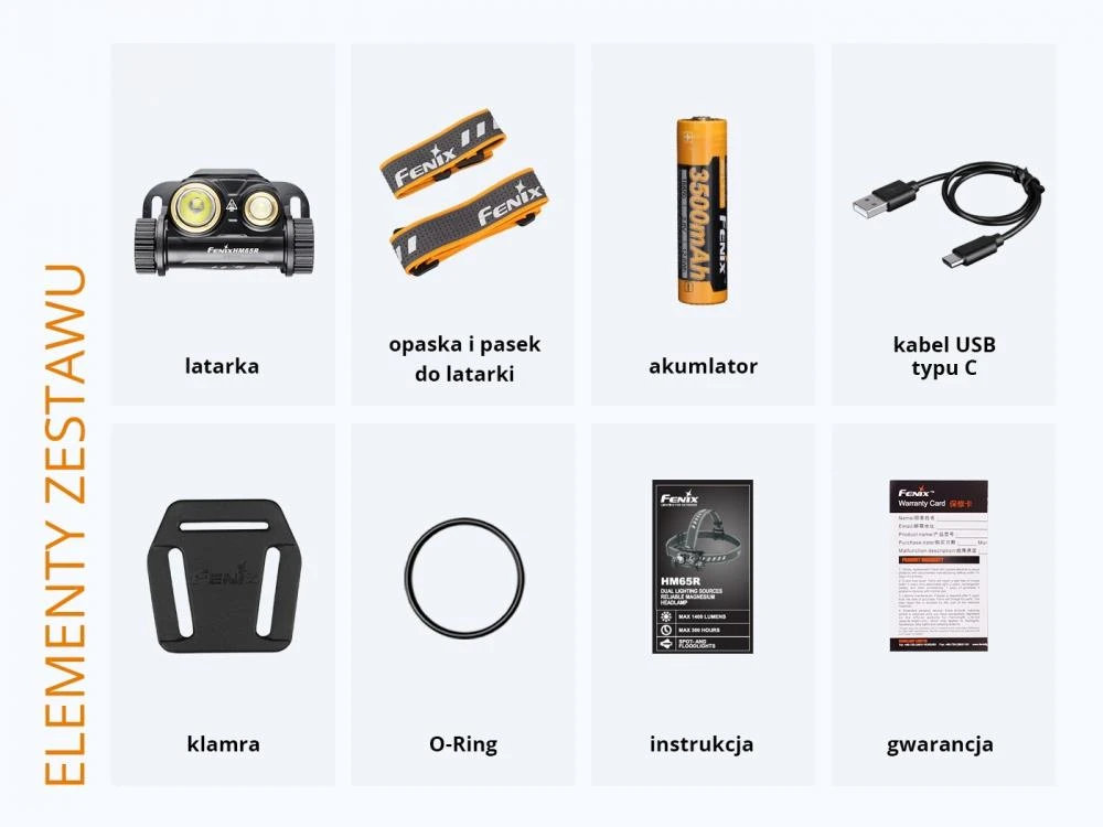 Fenix HM65R to niezawodna latarka czołowa z dwoma diodami o łącznej mocy 1400 lumenów, systemem ładowania przez port USB-C oraz pancerną, aluminiową obudową. Fenix HM65R jest to mocna latarka czołowa dla wymagających użytkowników.