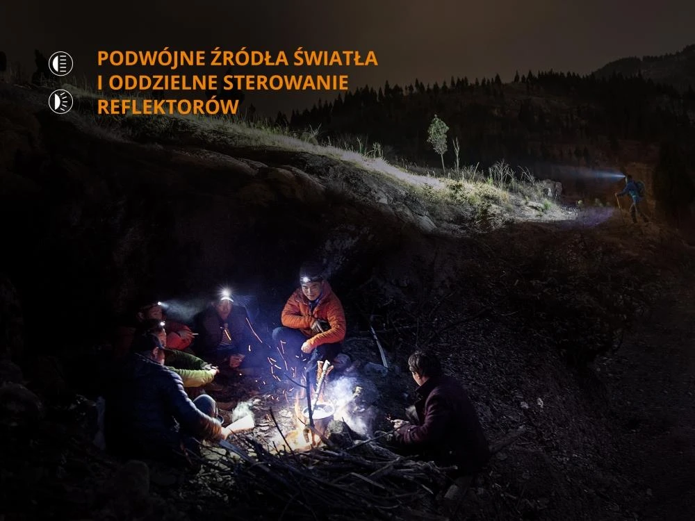 Kompaktowa, lekka konstrukcja i brak zewnętrznego okablowania sprawiają, że czołówka idealnie nadaje się do wszelkich aktywności outdoorowych, takich jak eksploracja jaskiń, biwakowanie czy nocny jogging.
