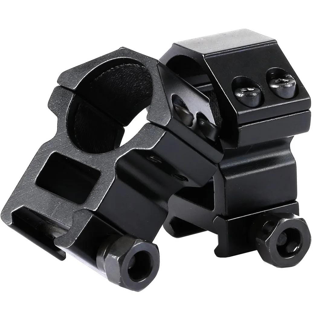 Praktyczny i wytrzymały montaż dwuczęściowy o wysokim profilu, idealny do lunet z calowym tubusem, montowany na szynę o szerokości 22 mm w standardzie picatinny/weaver.