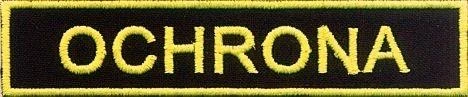 Napis w kolorze żółtym jest widoczny już z daleka. Naszywka powszechnie stosowana na piersi lub na rękawie kurtki, polara, kamizelki taktycznej itp.Naszywka OCHRONA.