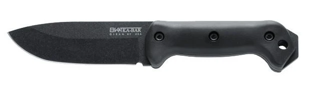 Solidny nóż surwiwalowy BK22 z serii Becker Knives, produkowanej od 2009 roku przez znaną na całym świecie firmę Ka-Bar. BK22 różni się od modelu BK2 znajdującym się w komplecie poliestrowym futerałem . Nóż został wykonany z jednego kawałka stali Cro-Van klasy 1095, pokryty czarną matową warstwą zabezpieczającą przed korozją i odblaskami. Przeznaczony do ciężich prac w terenie, bez problemu radzi sobie z rąbaniem grubszych gałęzi itp. Jego ostrze ma grubość aż 6,35mm. Materiał użyty do wykonania rękojeśći jest praktycznie niezniszczalny (ZYTEL renomowanej firmy DuPont). Jelcowaty kształt rękojeści w dolnej jej części zabezpiecza przed zsunięciem się dłoni na ostrze. W komplecie znajduje się poliestrowa pochewka na nóż w kolorze czarnym. Można zamontować ją do paska, palsy zgodne ze standardem MOLLE/PALS do montażu w kamizelce.Nóż wyprodukowany w USA.