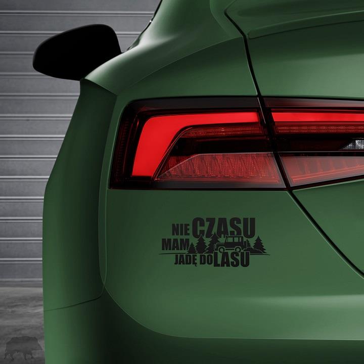 Odblaskowa czarna naklejka NIE MAM CZASU JADĘ DO LASU