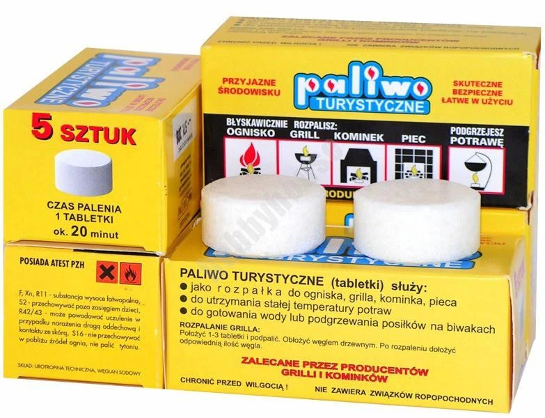 Paliwem tym zagotujesz wodę lub podgrzejesz posiłek. Jest ono wydajne - jedna kostka pali się aż ok 20 minut!