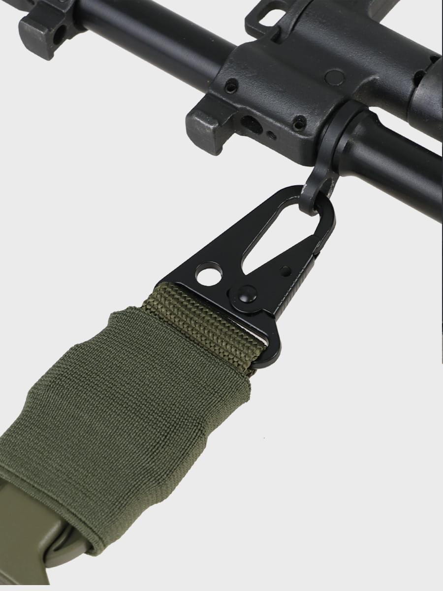 Pas ma regulowaną długość i można go szybko zdjąć z broni.
