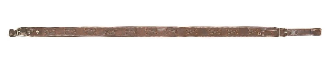 Pas do broni wyprodukowany ze skóry juchtowej w kolorze brązowym.