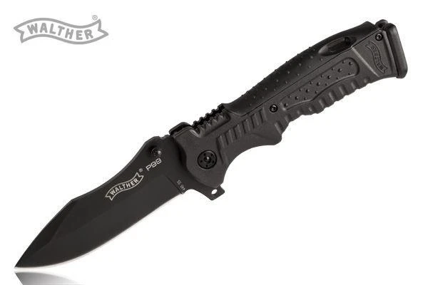 Nóż Walther P99 to składany, taktyczny nóż, wyposażony w zestaw wymiennych okładzin w 3 rozmiarach, wyposażony w kołek oraz tzw. flipper, czyli zaczep głowni pozwalający błyskawicznie rozłożyć ostrze na dwa sposoby. Czerniona głownia typu spear point została wykonana z nierdzewnej stali 440, która dobrze utrzymuje ostrość roboczą oraz łatwo się ostrzy, nawet w warunkach terenowych.
