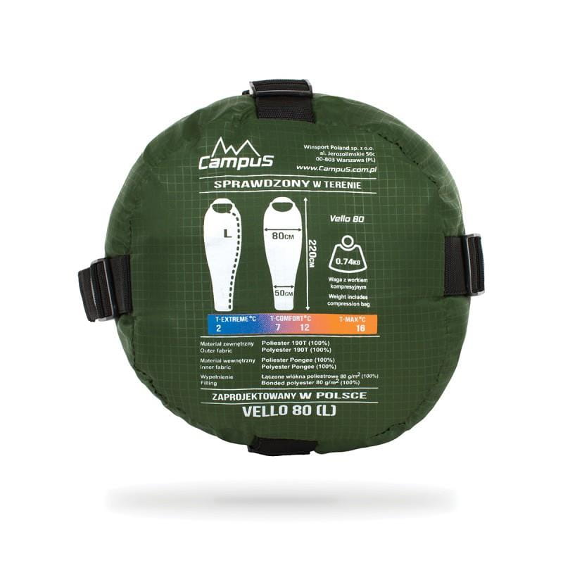 Śpiwór Vello 80 mumia z kapturem zielony Campus L