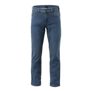 Spodnie zostały wykonane z innowacyjnego materiału DuraDenim, w którym włókna jeansowe przeplatają się z włóknami Cordury.