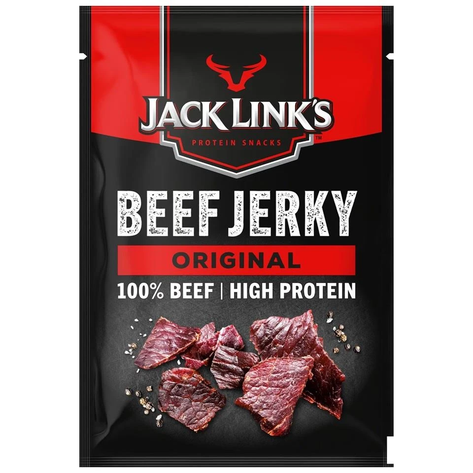Beef Jerky Jack Link's Original to delikatne kawałki najlepszej wołowiny o charakterystycznym słodkawym smaku z nutą podwędzenia - przygotowane i suszone według tajnej, rodzinnej receptury Jack Link's, bazującej na 130 latach doświadczenia, ogromnych umiejętnościach i cierpliwości.