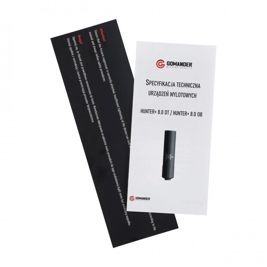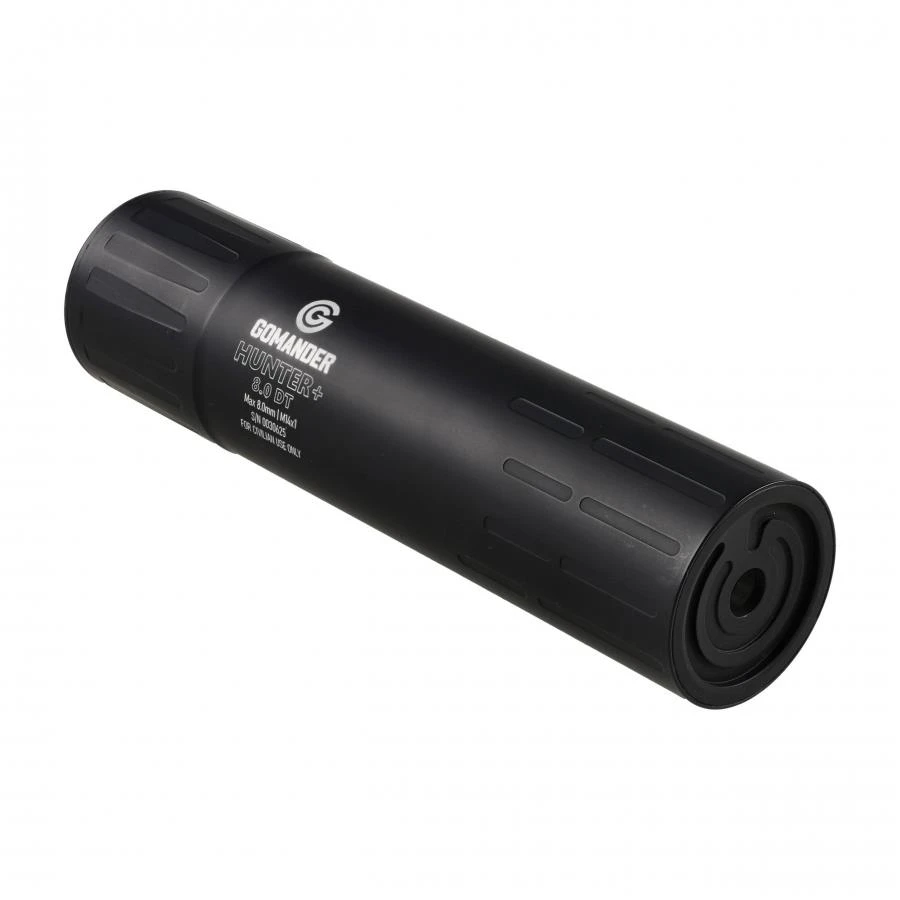 Tłumik do broni myśliwskiej Gomander Hunter 8.0 DT Generacji II to to skuteczne urządzenie wytłumiające dźwięk strzału, nakręcane na gwint u wylotu lufy (Direct Thread). Stworzony został specjalnie do współpracy z bronią myśliwską, gdzie ogranicza płoszenie zwierzyny. Tłumik wykonano z lekkiego aluminium lotniczego, co przekłada się na niską masę oraz dobre przewodnictwo cieplne (szybsze schładzanie). Dodatkowe pokrycie powierzchni tłumika powłoką ochronną Cerakote zapewnia zabezpieczenie przed niekorzystnym wpływem kwaśnego środowiska tworzonego przez resztki prochu. Najważniejszym jest w konstrukcji system redukujący powracanie gazów prochowych z powrotem do komory nabojowej oraz w stronę strzelca. Tłumik jest też dzięki temu łatwy w czyszczeniu.