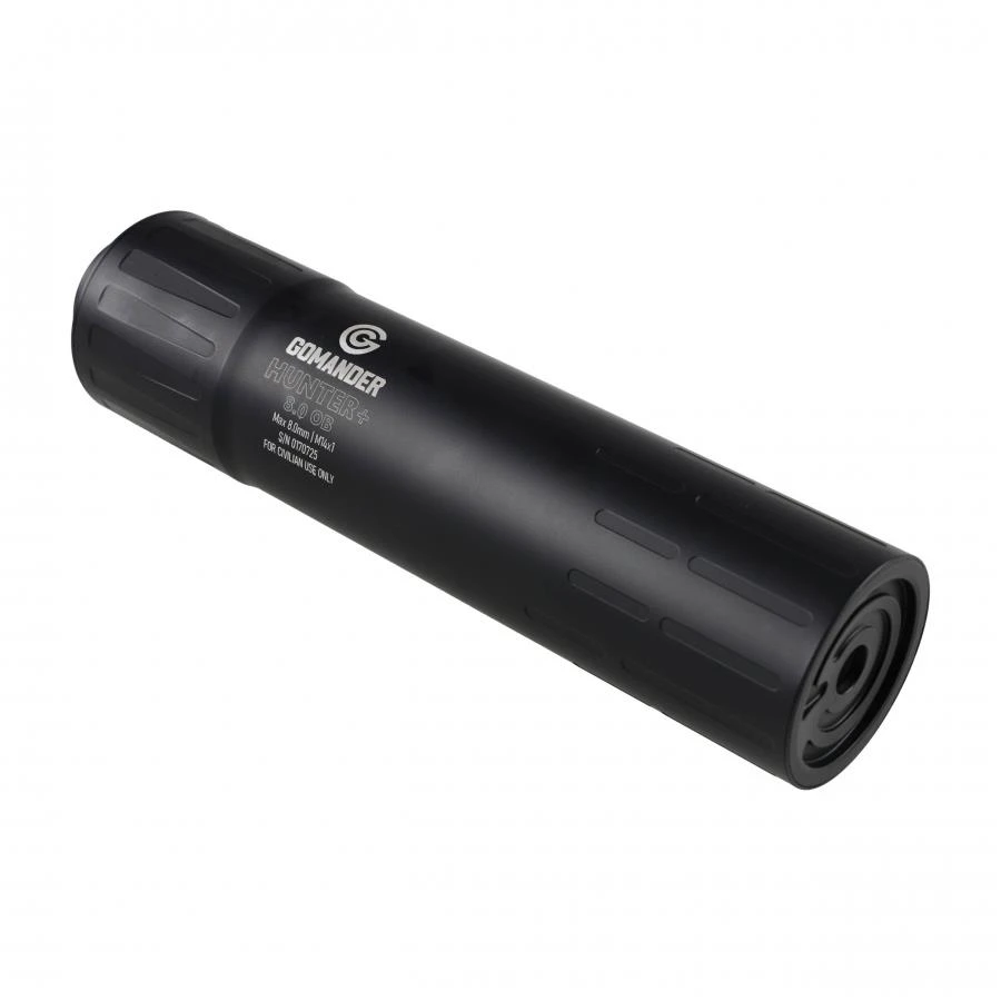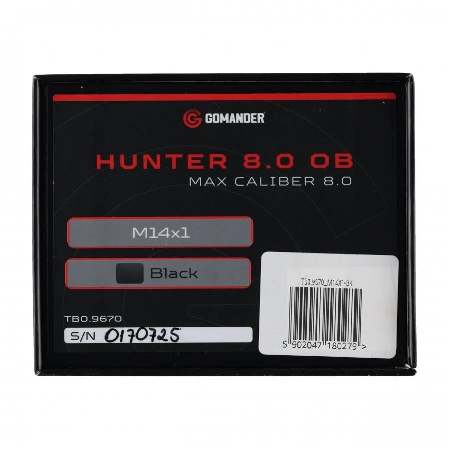 Tłumik do broni myśliwskiej Gomander Hunter 8.0 OB Generacji II to skuteczne urządzenie wytłumiające dźwięk strzału, mocowanie bezpośrednio na lufie (Over Barrel). Stworzony został specjalnie do współpracy z bronią myśliwską, gdzie ogranicza płoszenie zwierzyny. Tłumik wykonano z lekkiego aluminium lotniczego, co przekłada się na niską masę oraz dobre przewodnictwo cieplne (szybsze schładzanie). Dodatkowe pokrycie powierzchni tłumika powłoką ochronną Cerakote zapewnia zabezpieczenie przed niekorzystnym wpływem kwaśnego środowiska tworzonego przez resztki prochu. Najważniejszym jest w konstrukcji system redukujący powracanie gazów prochowych z powrotem do komory nabojowej oraz w stronę strzelca. Tłumik jest też dzięki temu łatwy w czyszczeniu. Model jest w kolorze czarnym i dostosowany jest do gwintu 14x1.