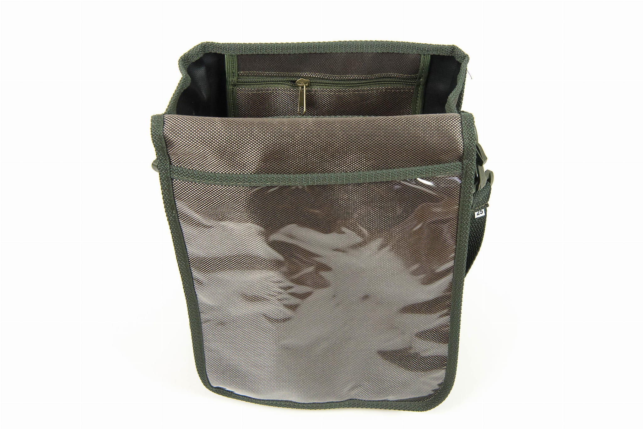 Główna komora dodatkowo wyposażona była w dyskretną kieszonkę, zapinaną na zamek błyskawiczny na dokumenty czy telefon. Z przodu torby znajdują się pętle na długopisy, latarkę itp. Na klapie od strony wewntrzej znajduje się foliowa kieszeń. Po bokach torby znajdziemy zgrabne kieszonki zamykane na rzep.