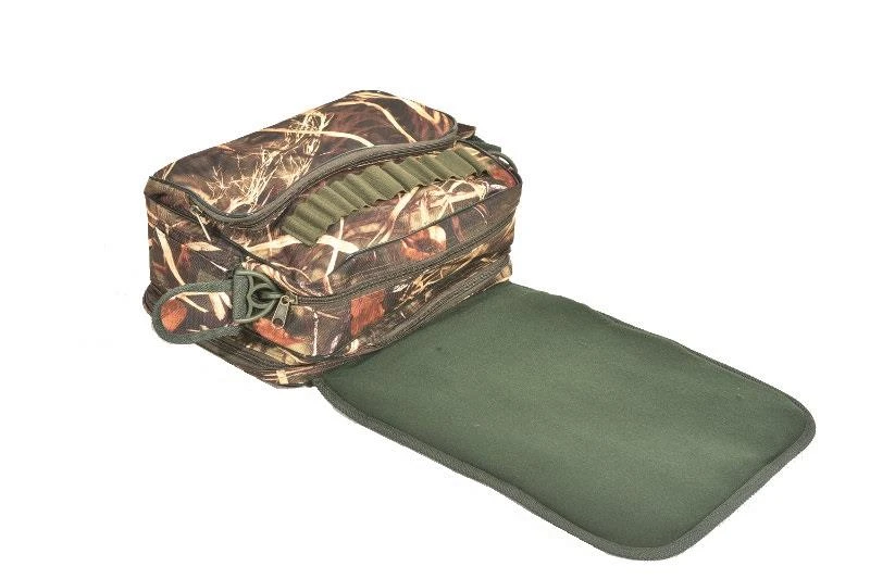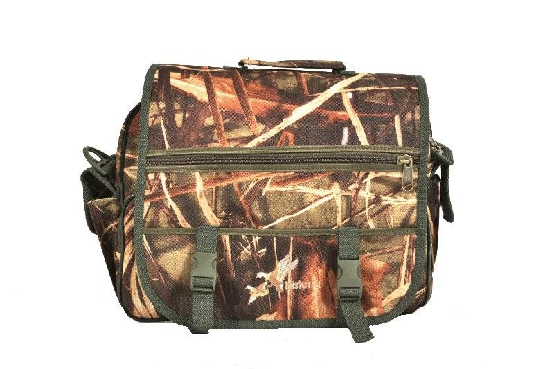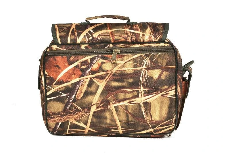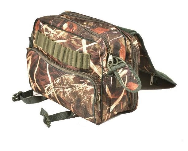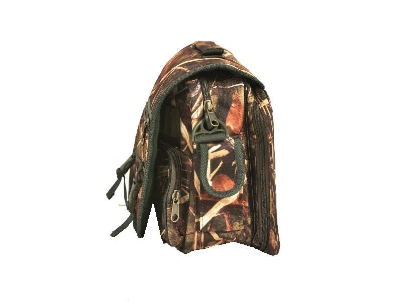 Torba myśliwska Rys to sztywna raportówka w kamuflażu real tree. Klapa torby jest także siedziskiem, wyściełnym miłym polarem . Z przodu klapy znajduje się równierz płaska kieszonka, a cała klapa zapinana jest na dwie klamry. Oprócz tego Torba posiada komorę głowną z dyskretną kiesonką na np dokumenty, mniejszą,węższą komorę, ładownicę oraz dwie małe kieszonki po bokach torby zamykane na rzep.