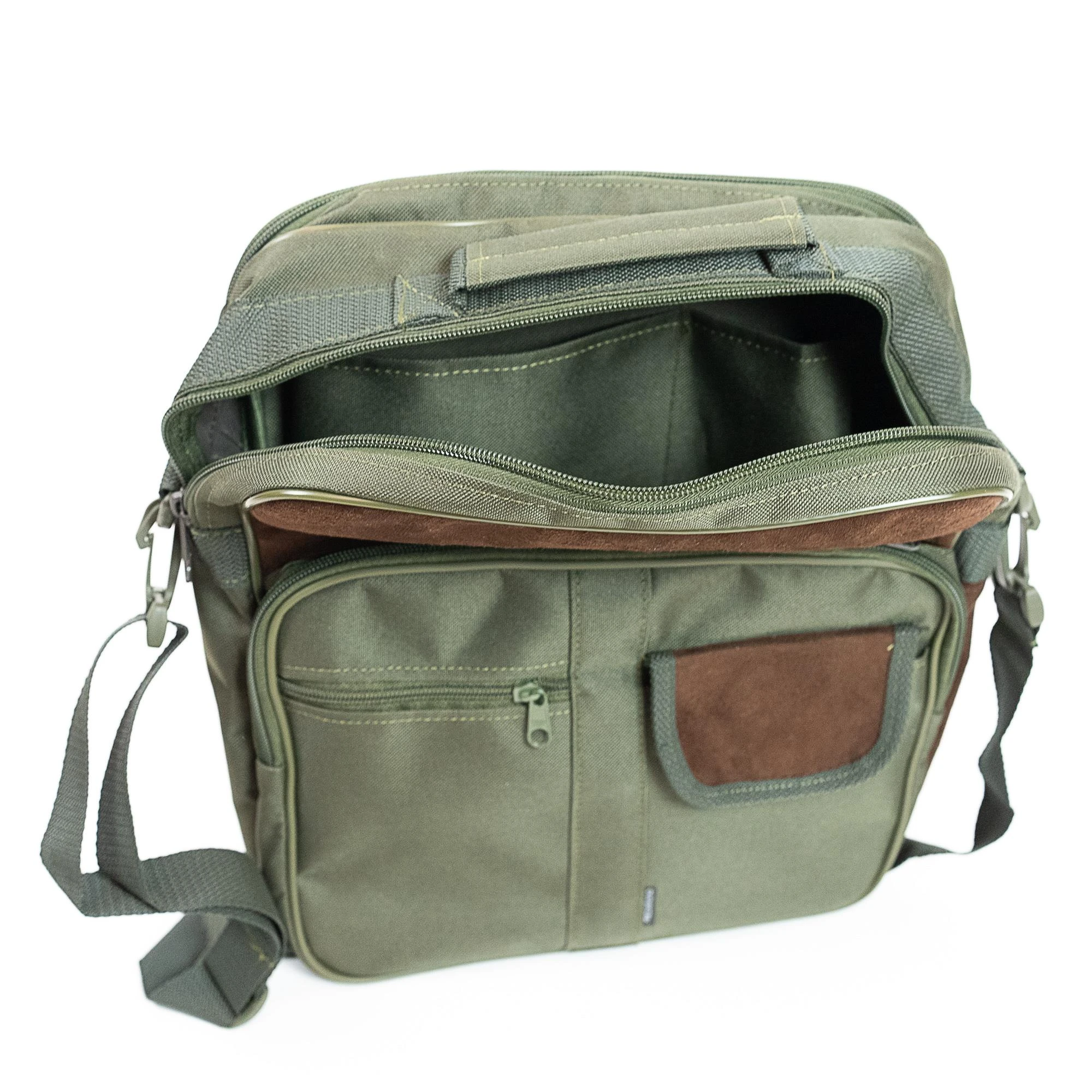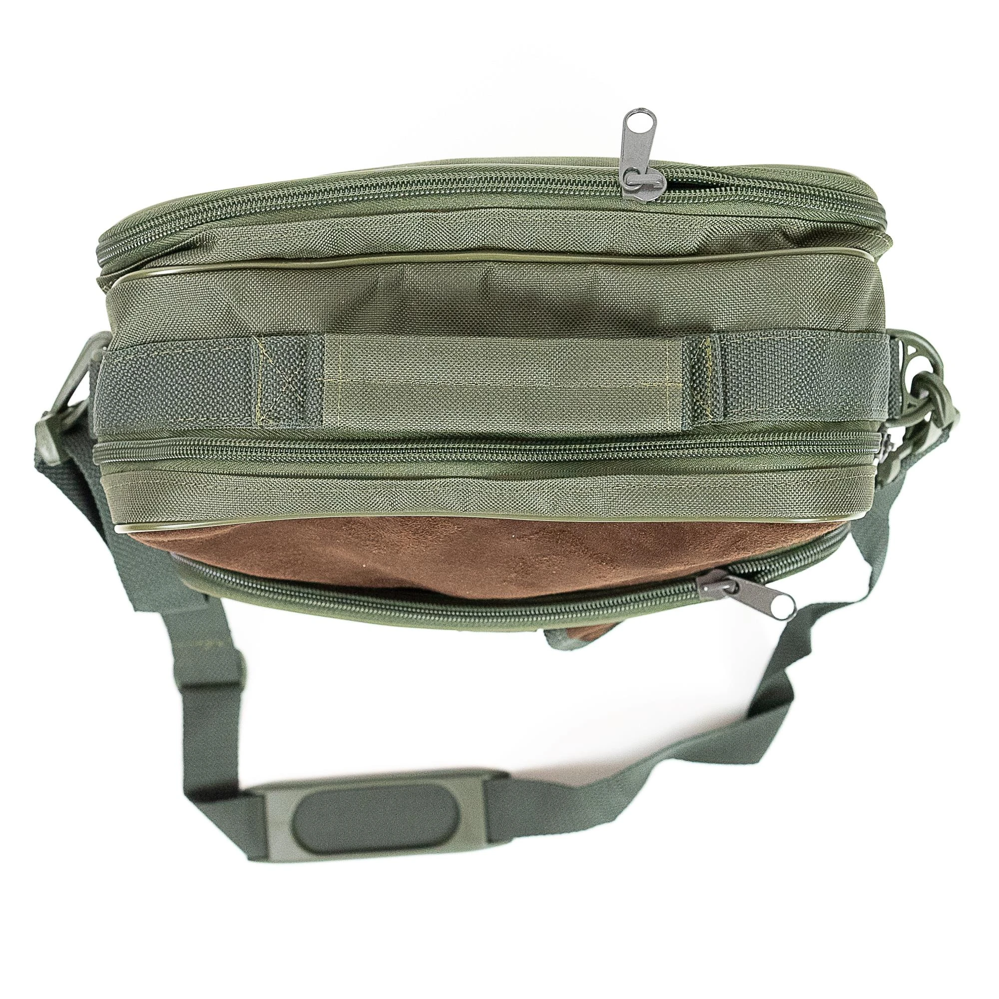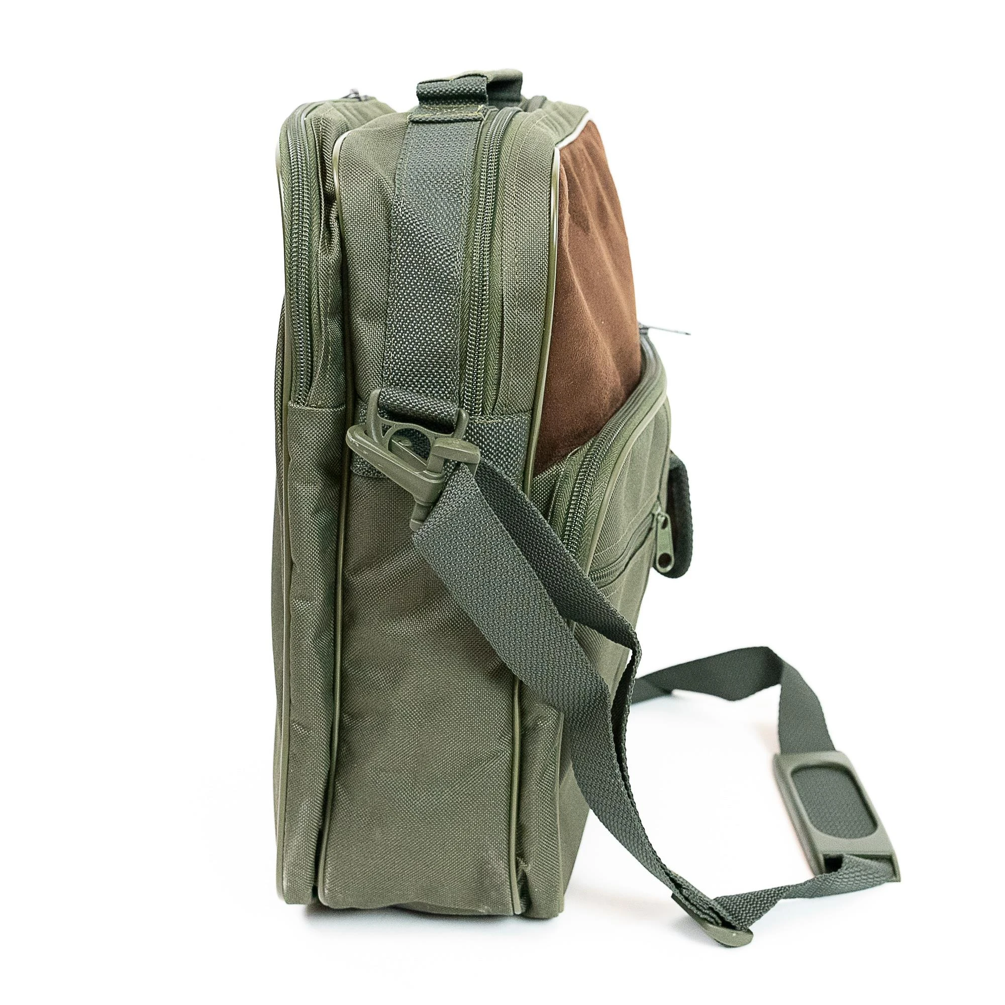 Torba posiada dwie przestronne komory główne, z czego jedna jest wyposażona w praktyczny organizer, idealny do przechowywania mniejszych akcesoriów, takich jak latarki, lornetki czy noże myśliwskie. Dodatkowa, mniejsza komora zewnętrzna zapewnia szybki dostęp do często używanych przedmiotów. Znajdują się tam również kieszeń na zamek oraz kieszeń na rzep, które pozwalają na bezpieczne przechowywanie cennych drobiazgów.