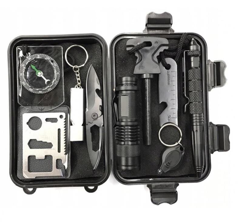Zestaw survivalowy w pudełku, latarka, zbijak, nożyk
